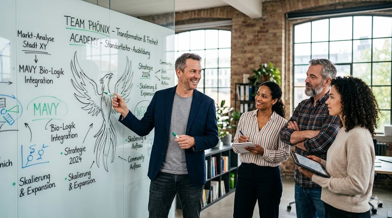 Dein Vorsprung: Du startest direkt als zertifizierter MAVY Coach mit einem praxiserprobten System im Rücken. Wir transformieren unser gesamtes Expertenwissen in dein Fundament, damit du in deiner Region sofort den Experten - Status in der Stoffwechsel-Optimierung setzt und hochwertige, messbare Ergebnisse lieferst.